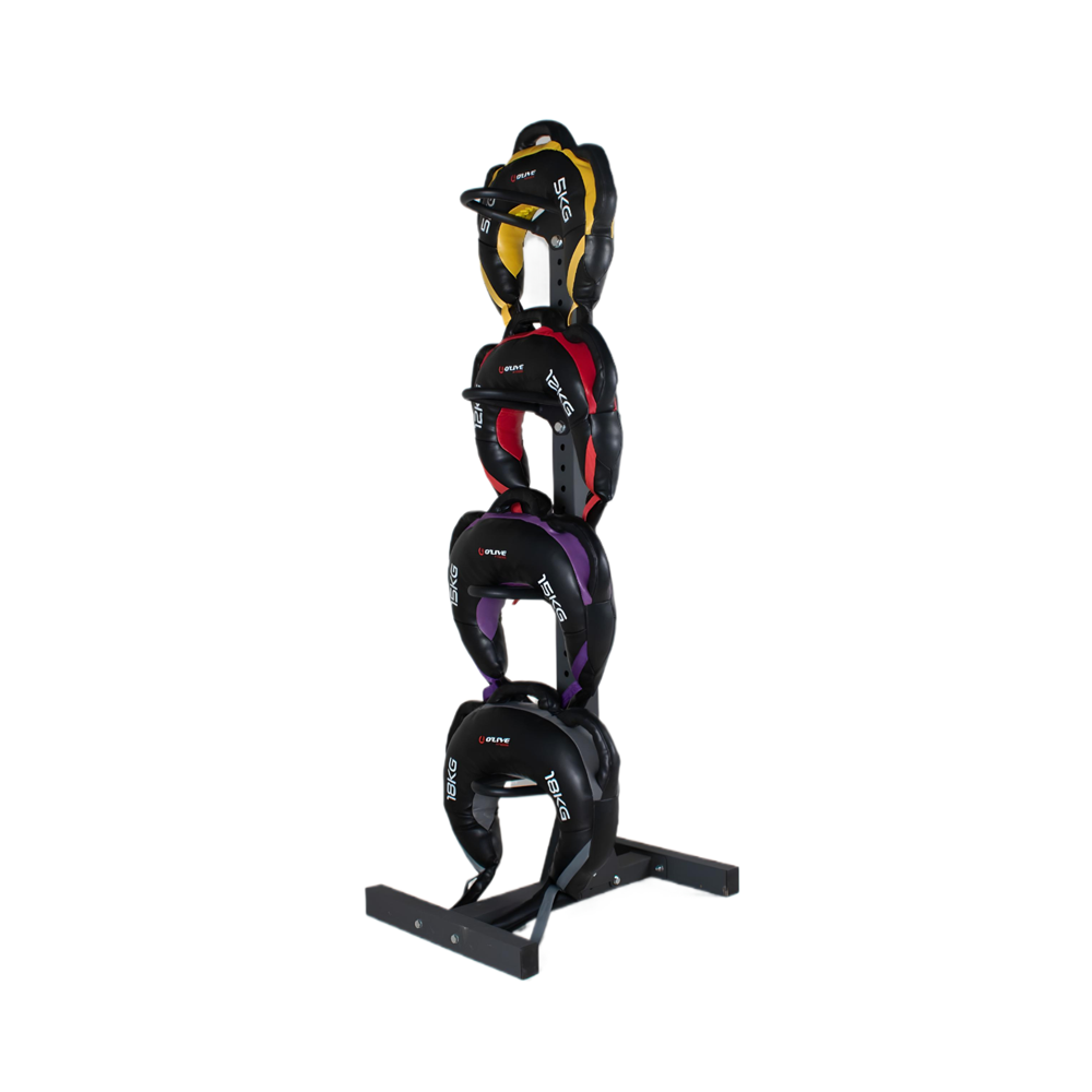 Stativ med 5 kraftige bøjler til slam balls / medicin bolde eller andet tilbehør såsom shoulder bags, functional bags m.v. Sælges uden bolde / tilbehør.