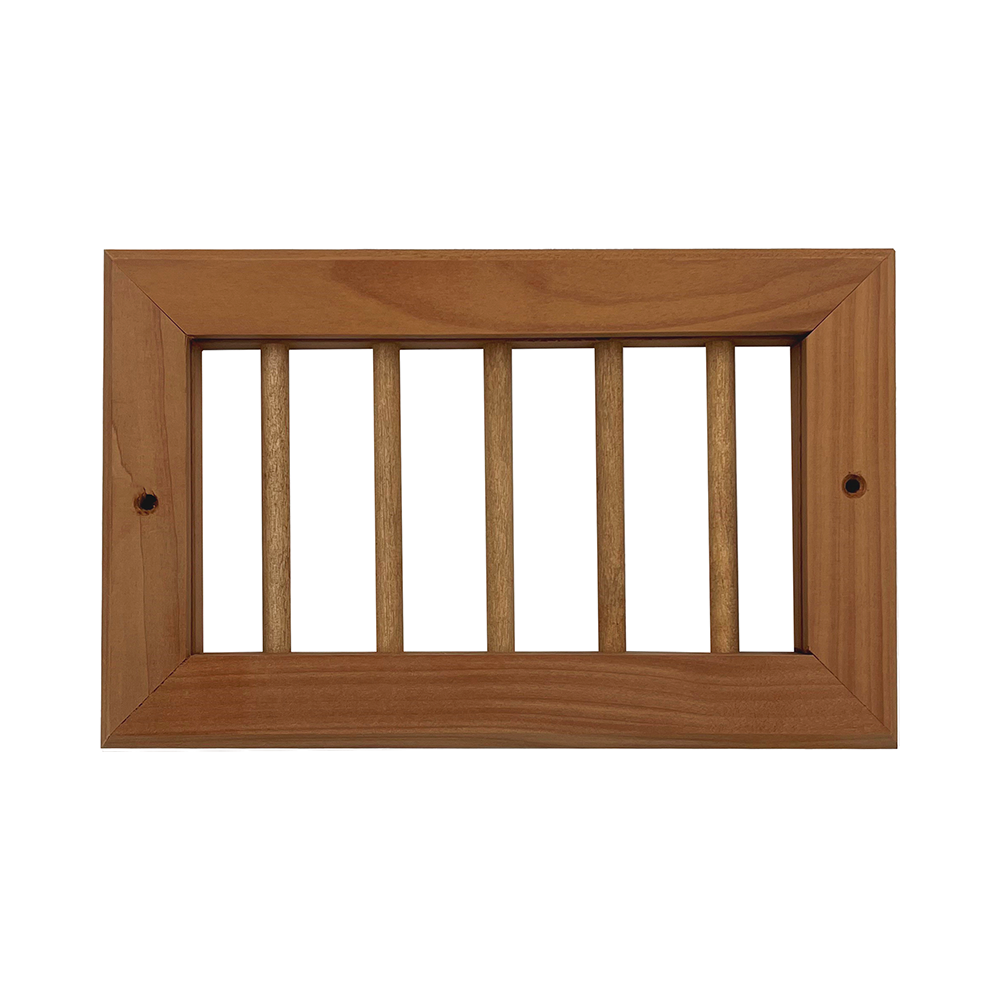 Saunaventilrist i mørk termoast. Kanalmål 9 x 18 cm. Kan bruges i saunaen til konstant luft indsugning under saunaovnen.