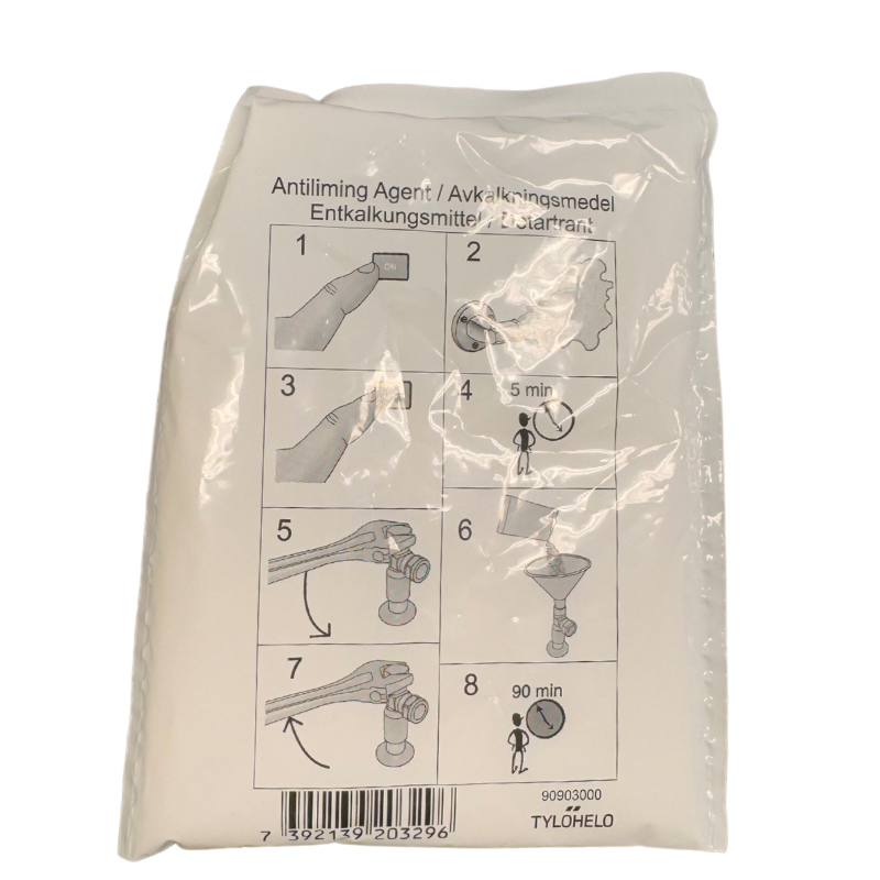 Kan ses i butikTylö Afkalkningsmiddel solvent til afkalkning af Tylø dampgeneratorer. Leveres i kasse med 50 potionsposer a 80 g.